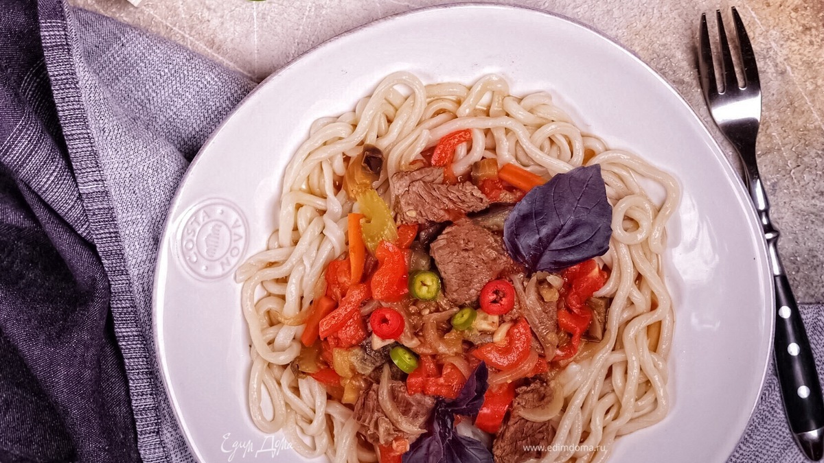 Лагман — это традиционное блюдо среднеазиатской кухни, очень сытное и невероятно вкусное! В традиционном рецепте используется большое количество чеснока и перца чили, блюдо в итоге получается острым. Остроту, конечно, можно регулировать на свой вкус.