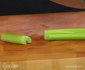 Стебель сельдерея разрезать пополам.