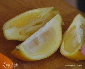 Из четвертинки лимона выжать сок.