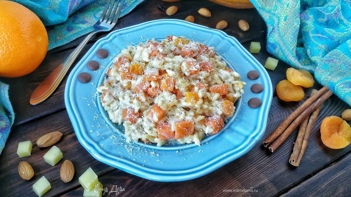 Ризотто с тыквой, курагой, корицей и нотками апельсина на миндальном молоке