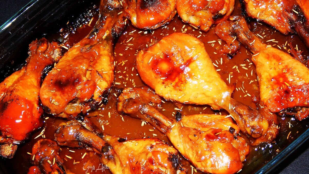 Оставшуюся глазурь выливаем сверху на голени и ставим их в разогретую до 190°C духовку минут на 30, готовим до золотистого цвета.
