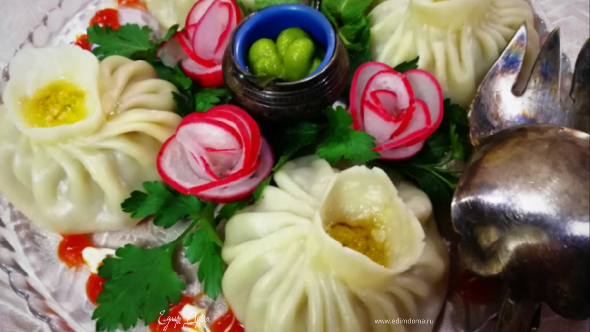 «Фарфоровыми» эти манты называются из-за теста, разведенного на крахмале. Они получаются белыми, тонкими и очень нежными. Начинка может быть любая, я традиционно взяла мясо. Рецепт теста позаимствован из азиатской кухни, поэтому фаршу я придала такие же нотки. «Горлышко» я специально сделала удлиненным — в него можно влить растопленное сливочное масло. Получилось ну очень вкусно. Угощайтесь!
