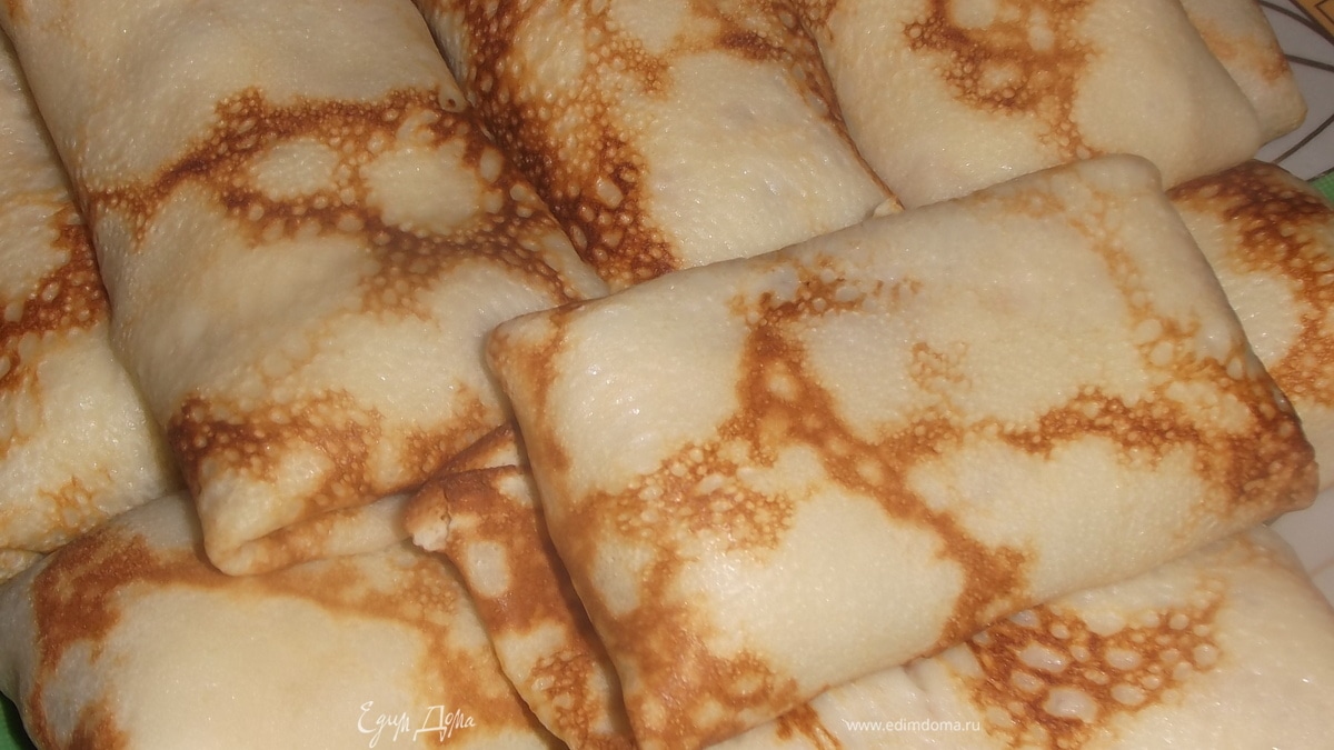 Жарим тонкие блины с двух сторон.