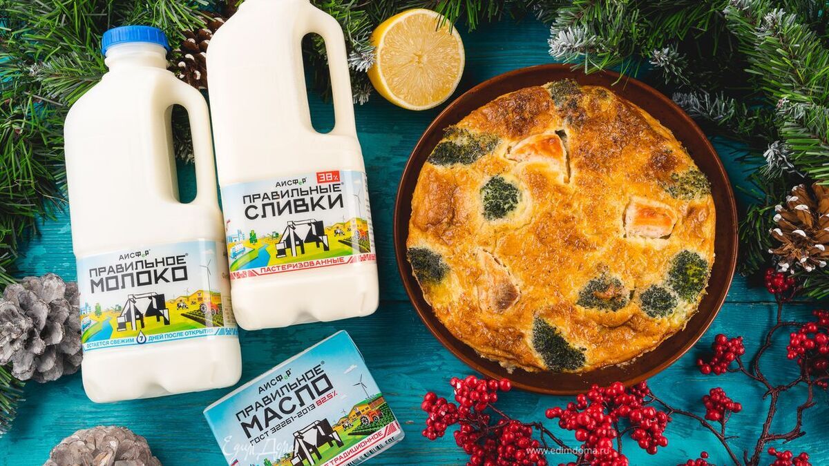 Приготовьте заливку. Для этого смешайте яйца, сливки ТМ «ПравильныеСливки» 38% и молоко ТМ «ПравильноеМолоко» 1,5%. Взбейте. - Шаг 5