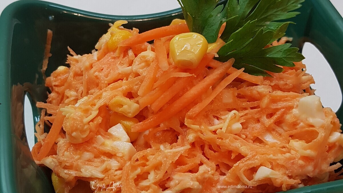 К моркови, сыру и яйцам добавить консервированную кукурузу.