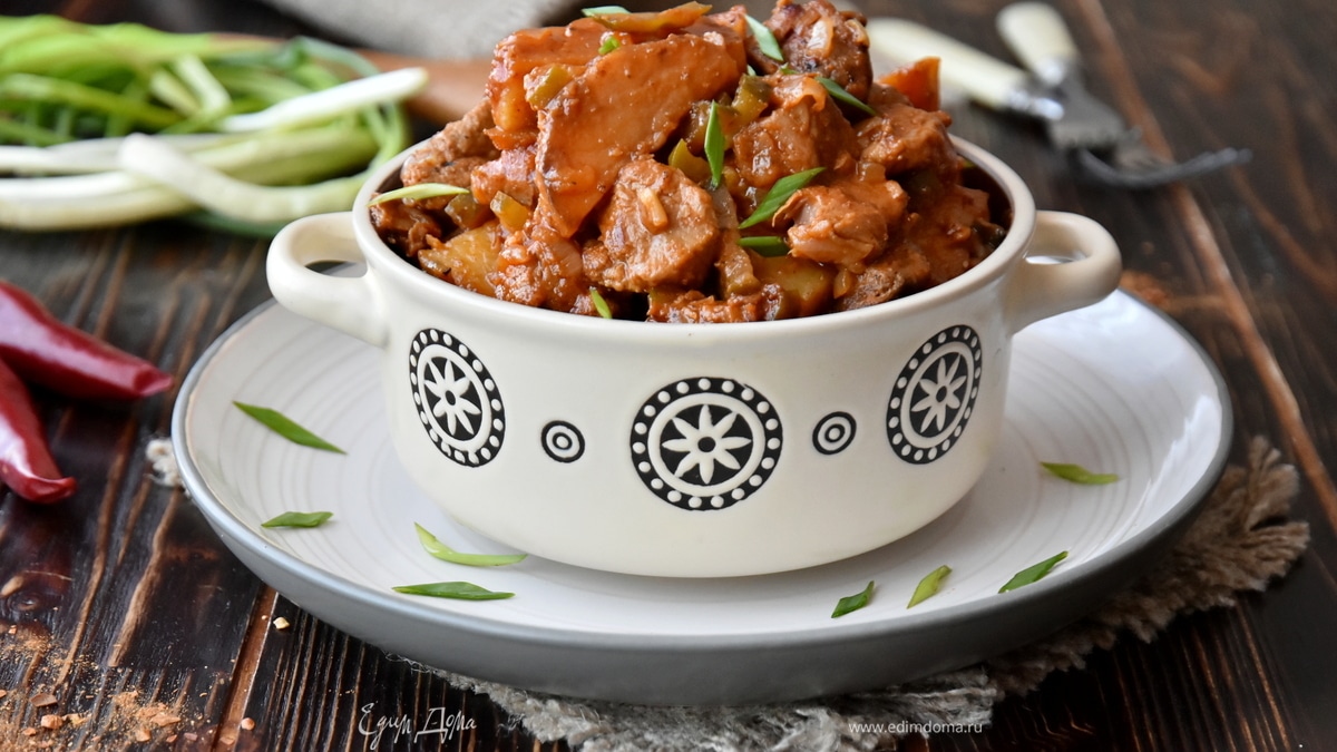 Азу — традиционное блюдо татарской кухни. Блюдо достаточно сытное, так как содержит и гарнир в виде обжаренного картофеля, и мясную подливу с овощами.