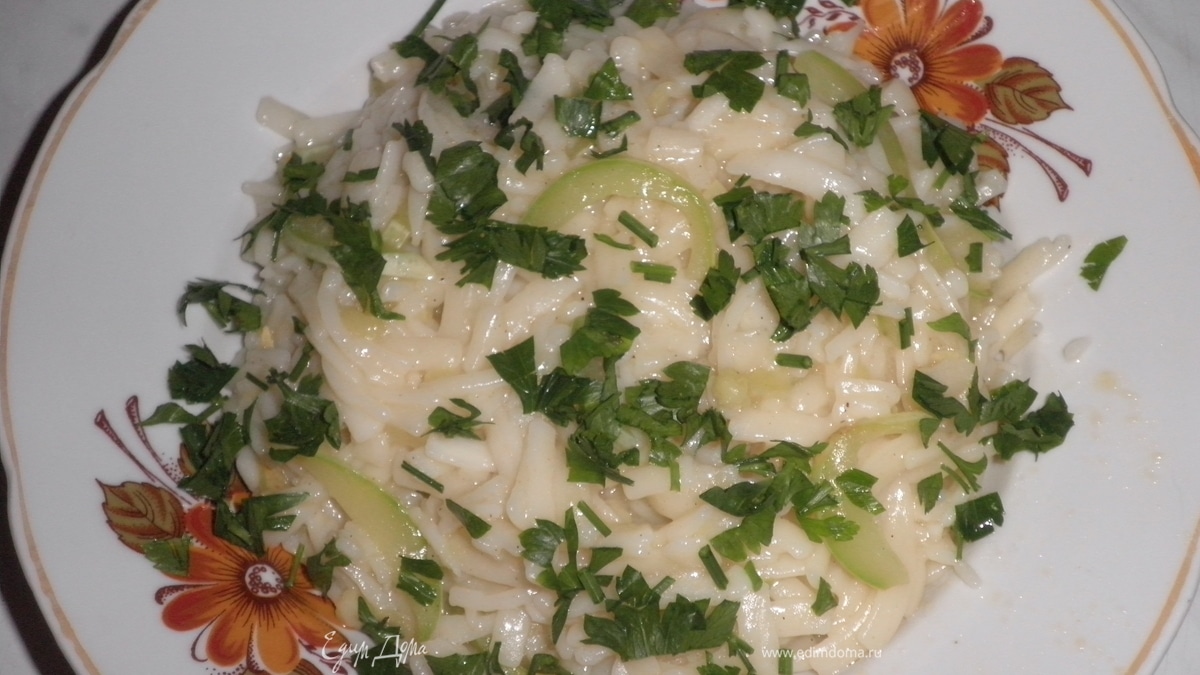 - Шаг 11. Макаронные изделия отварить в подсоленной воде до готовности. Тем временем кабачки вымыть и нарезать тонкими полосками. 2. Разогреть в кастрюле сливочное масло и обжарить кабачки при постоянном помешивании. Посолить, поперчить, залить бульоном, накрыть крышкой и тушить 3 мин. на маленьком огне. 3. Макароны откинуть на дуршлаг и дать воде полностью стечь. Далее отправить макароны к тушеным кабачкам и перемешать. Убрать с огня. при подаче посыпать мелко рубленной зеленью.