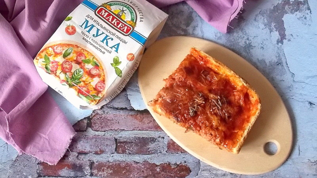 Форму смазываем полностью растительным маслом. Укладываем тесто в форму, плотно прижимая к бортам и дну. Лишнее тесто срезаем. Вообще, форма должна быть круглая с высокими бортами, это визитная карточка этой пиццы. Но у меня такой не нашлось, а очень хотелось попробовать, поэтому я взяла квадратную. - Шаг 8