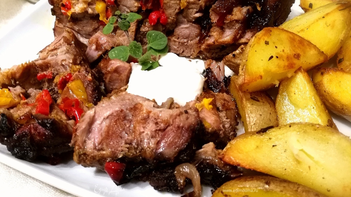По истечении времени мясо достать из духовки, дать ему минут 10 на отдых. Подавать с ломтиками картофеля и соусом дзадзики. - Шаг 6