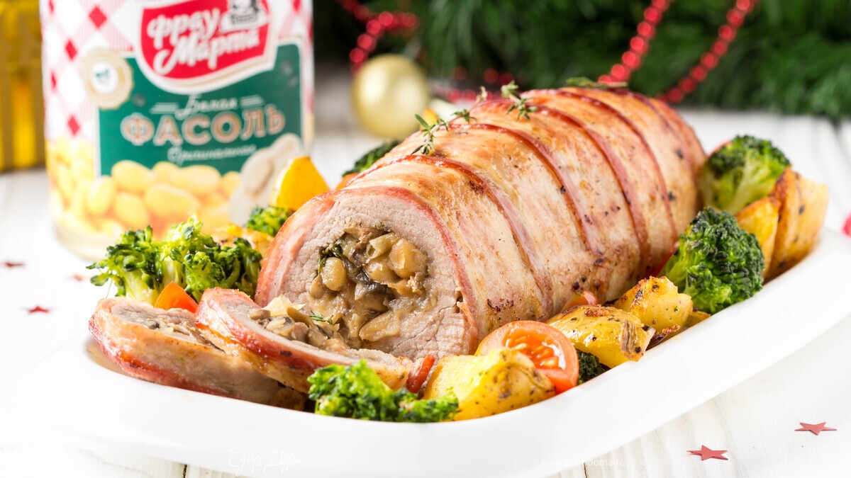 Свинина, фаршированная грибами и фасолью