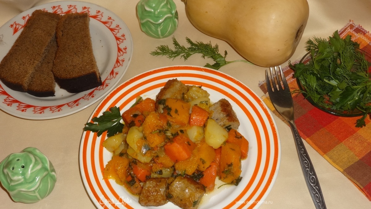 Рагу — универсальное блюдо, в него можно добавлять любые овощи, любые виды мяса и даже фрукты. Всегда получится сытно и вкусно. Сегодня в моем рагу доминируют тыква и морковь, также добавлен картофель, лук, пахучие приправы. В качестве мяса использовала сырые колбаски — купаты. Блюдо получилось вкусным и ароматным. В холодную погоду отлично согрело и насытило мою семью. Готовьте и угощайтесь!