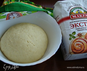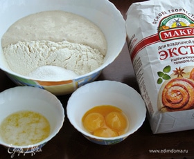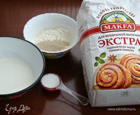 Для начала необходимо приготовить опару, чтобы активировать дрожжи. Для этого в теплом молоке размешать дрожжи, сахар и муку «Экстра» MAKFA. Поставить в теплое место.