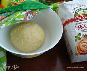 Миску с тестом накрыть салфеткой и поставить в теплое место на час.