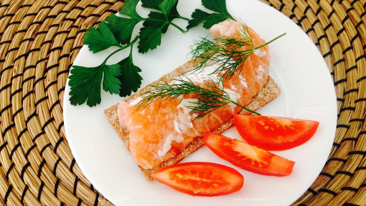 Малосольную рыбку украшаем зеленью, достаем хлебцы, и вуаля! Приятного аппетита!