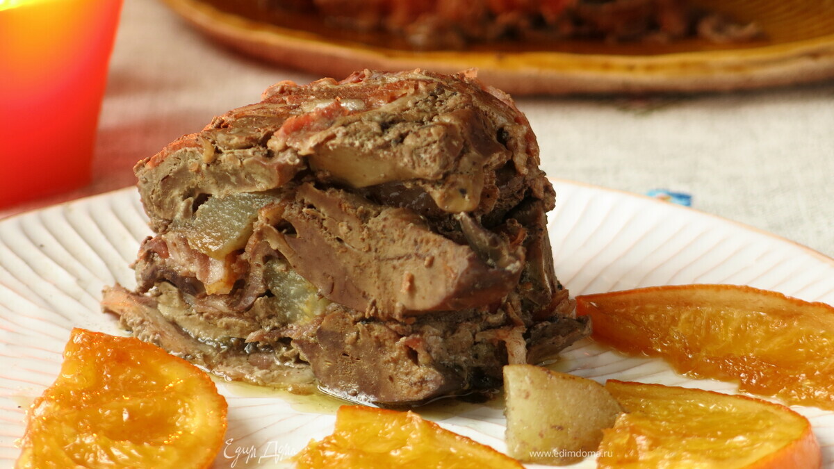 Утиная печень с прослойкой из бекона, с кусочками груш запекается в духовке в горшочке. Печень получается сочной, ароматной. Груша отдает свою сочность и добавляет немного