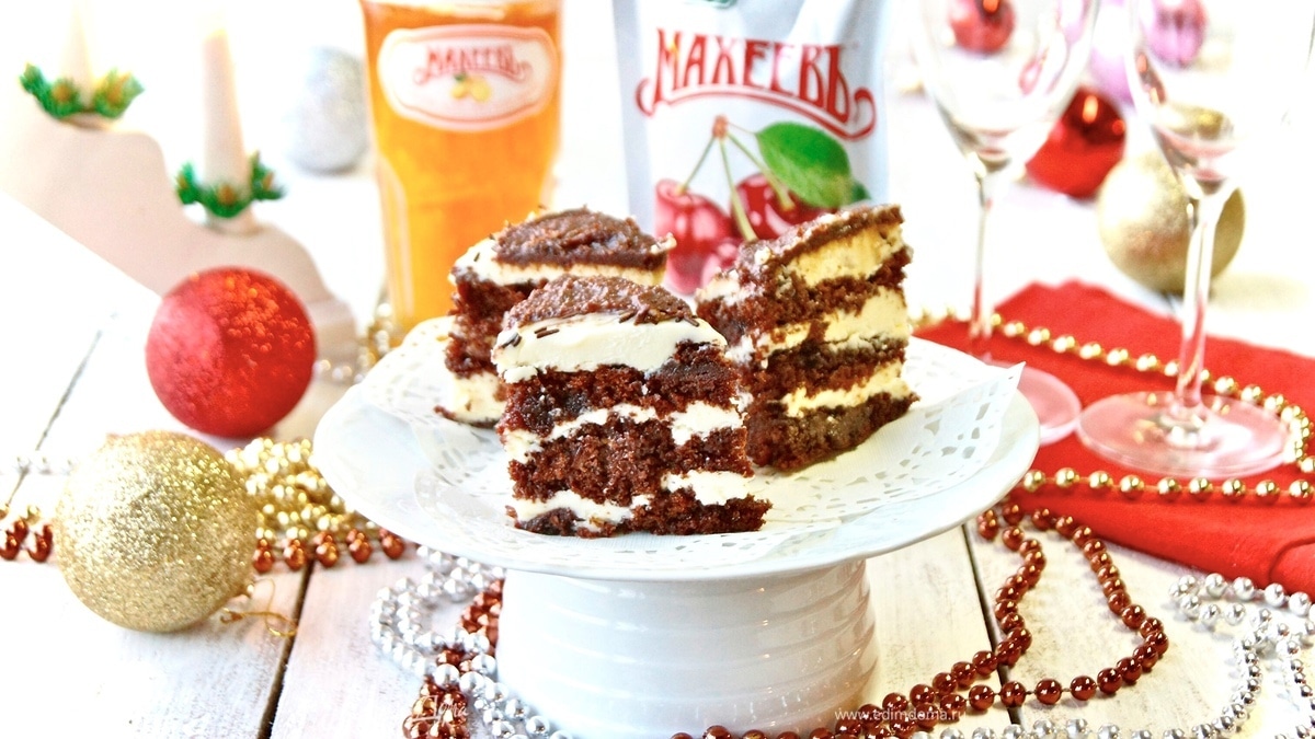 Для торта я увеличиваю вдвое все ингредиенты, выпекаю в форме диаметром 17 см. Остывший бисквит разрезаю на 3 части, смазываю вишневым джемом (пропитка не требуется, бисквит влажный и сочный), затем смазываю кремом все слои. Способ приготовления крема. Соедините воду с желтками и сгущенным молоком. Смесь поставьте на слабый огонь и варите, как английский крем, до сгущения. Если боитесь, что пригорит, используйте водяную баню. Взбейте масло с ванильным сахаром. Загустевшую смесь охладите и добавляйте во взбитое с ванильным сахаром масло. Добавляем понемногу, каждый раз взбивая. Крем получается очень нежным и воздушным. Ну вот и все, друзья, несколько вариантов для чаепития готовы, выбирайте тот, который больше понравился. С наступающим Новым годом!
