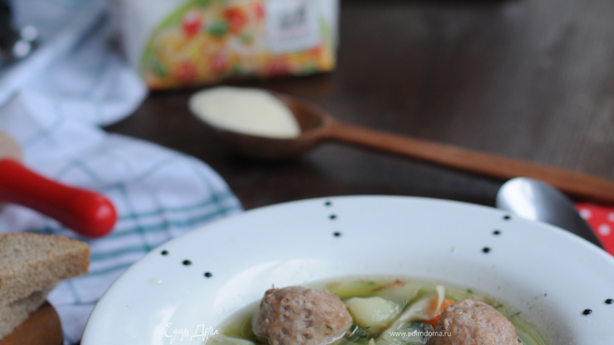 Иногда очень сложно накормить ребенка. Суп должен быть не только вкусным, но и красивым. Предлагаю приготовить суп с фрикадельками и фарфалле. Что такое фарфалле? Это паста в виде бабочек. Разноцветные макароны, шарики из моркови и картошки и сочные фрикадельки — и тарелка пуста!
