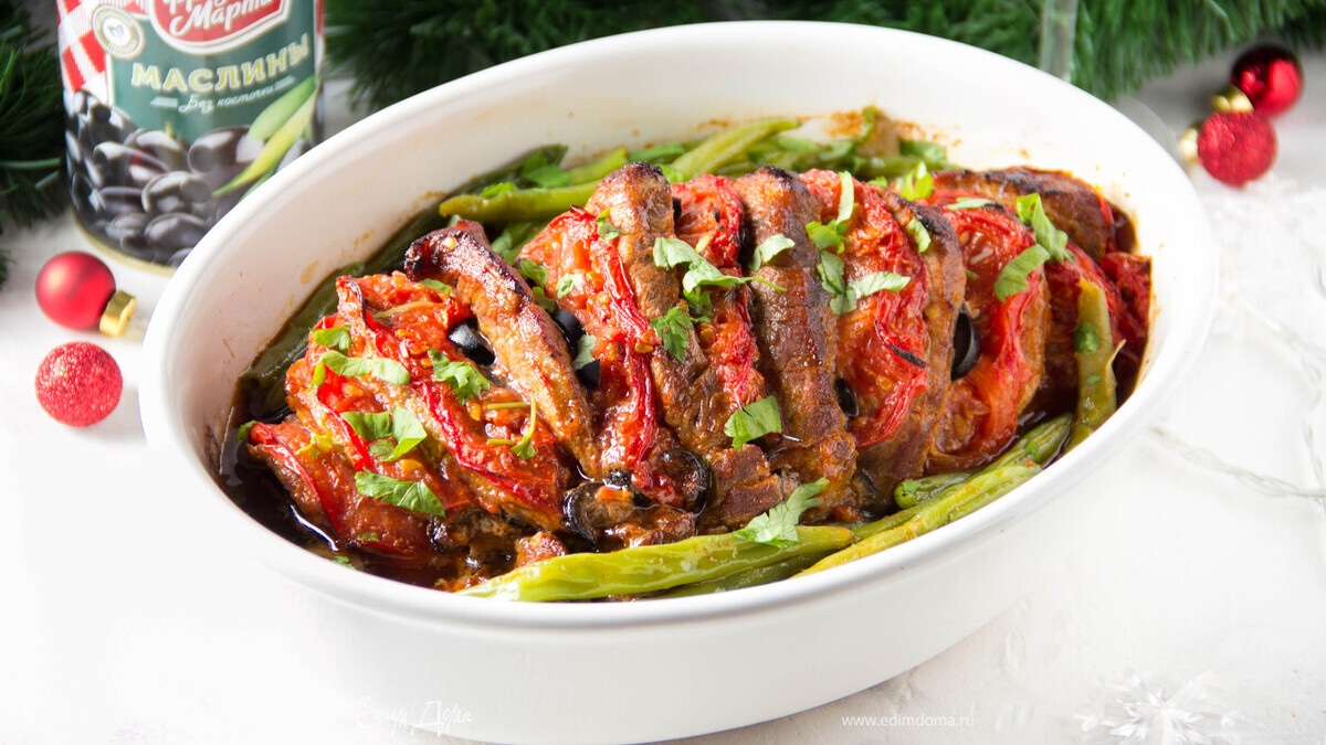 Свинина, запеченная с помидорами и маслинами