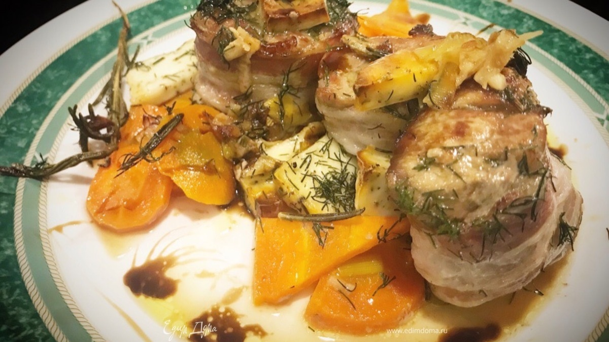 Рулеты из свиной вырезки в беконе с кавказским сыром