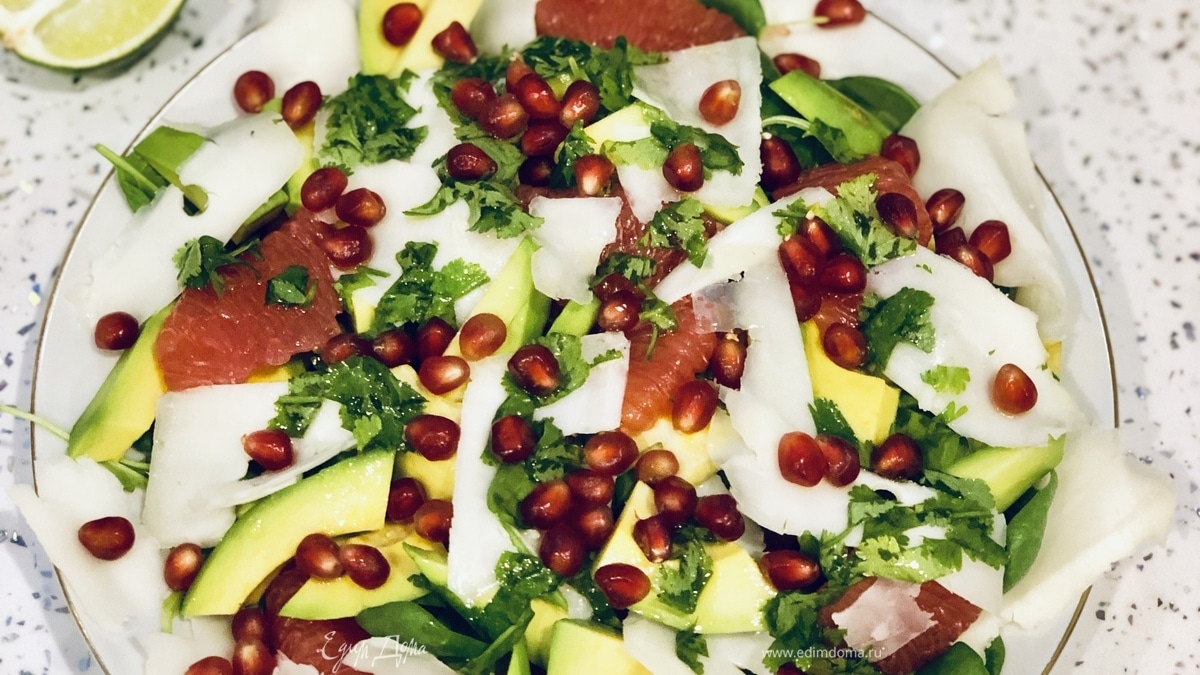 Салат с авокадо и грейпфрутом под соусом с кинзой и соком лайма