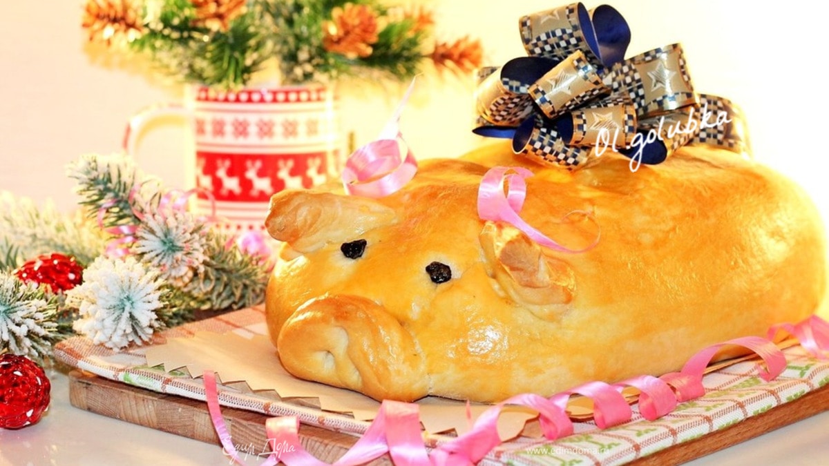Предлагаю вам рецепт кулебяки в форме символа Нового 2019 года — свиньи. В основе — кулебяка с рисом и рыбой. Для пирога подойдет любая рыба — как красная, так и белая. Лучше выбирать рыбу малокостную и более жирную — тесто пропитается ароматным рыбным соком, и пирог получится более сочный.