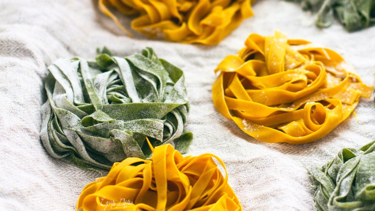 Готовим 2 варианта теста для тальятелле. Каждый вид теста готовится по следующим пропорциям: 1 яйцо на 100 г муки. Пшеничная мука МАКFА или мука «Экстра» МАКFА идеальны для пасты. - Шаг 2