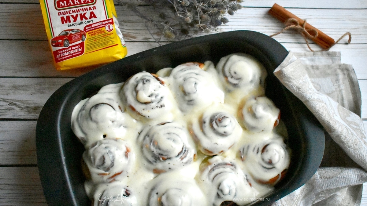 Я перепробовала несколько рецептов синнабонов, пока не нашла свой собственный вариант. Эти французские булочки никого не оставят равнодушным, потому что тесто получается очень нежным и воздушным, а в начинке, кроме традиционной корицы, также присутствует какао. Творожный крем довершает композицию, застывая на горячих синнабонах, становясь плотным и глянцевым.