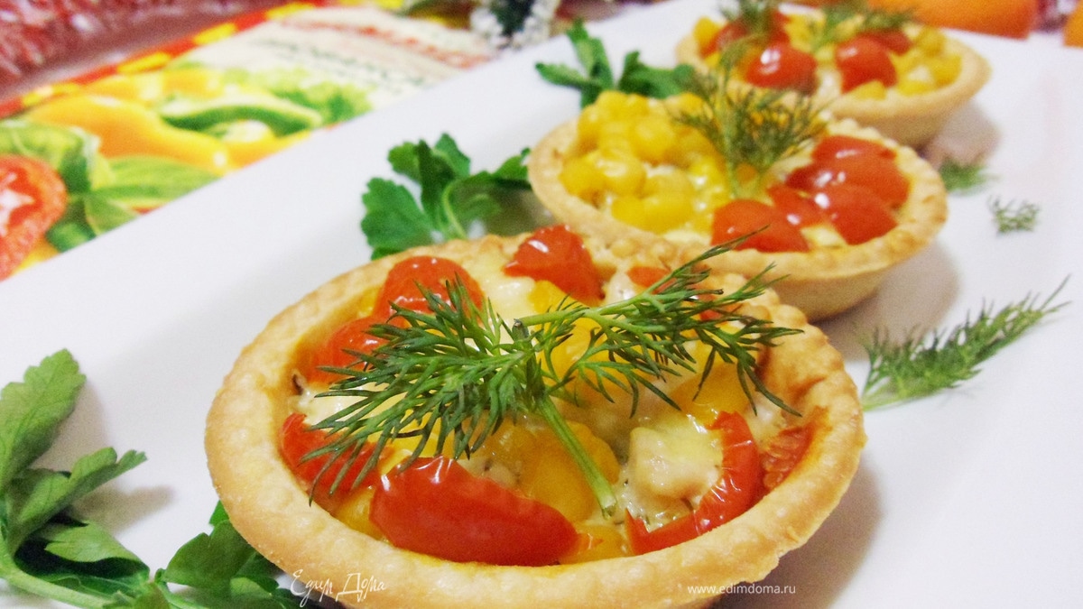 Запеченные тарталетки с курицей и кукурузой готовы.