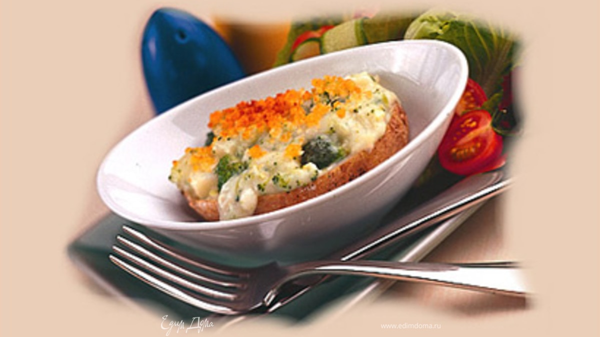 Запечённый картофель, фаршированный брокколи