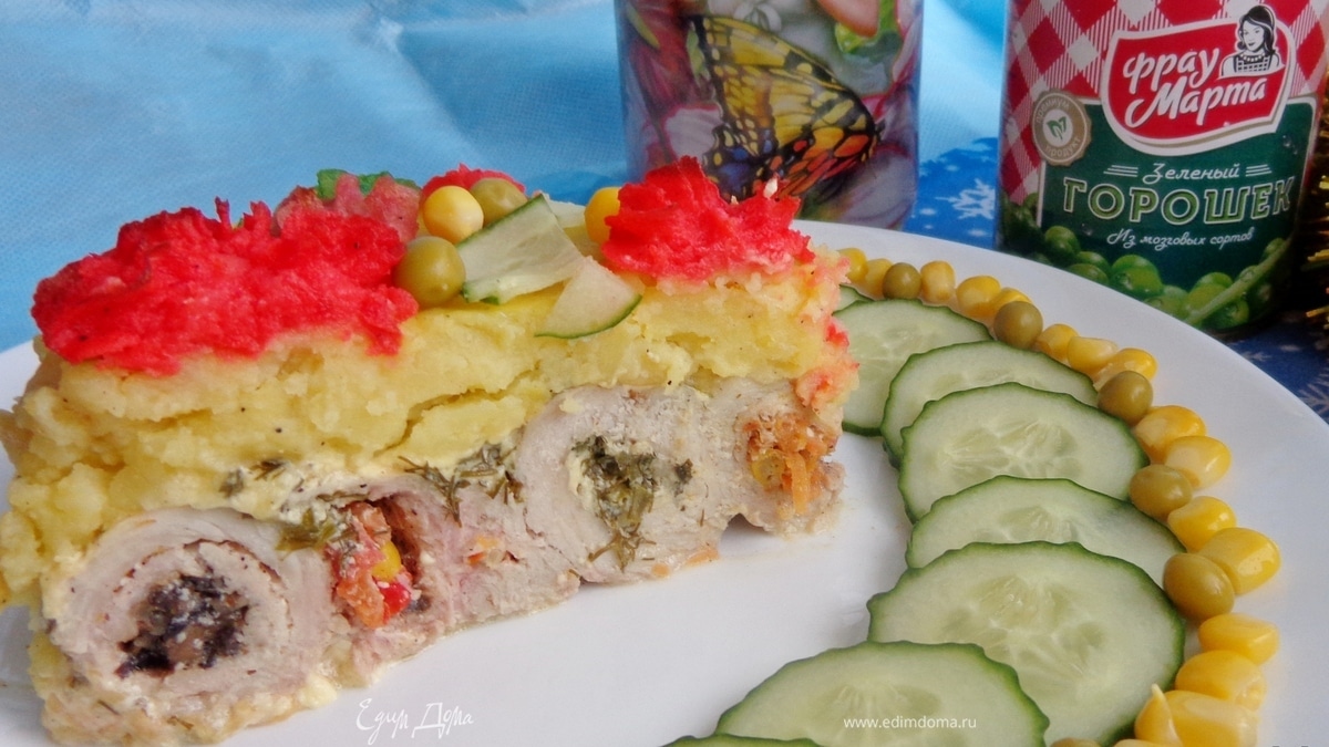 Танечка,прекрасный торт!Горячий,сытный,с разными начинками👍👍👍И красиво украшен!Супер!👏👏👏Поздравляю с новым годом!!!!🎄🎄🎄