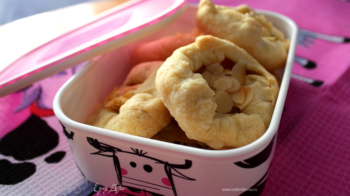 - Шаг 11. 200 грамм муки, 100 грамм масла, щепотку соли порубить в крошку 2. Влить в середину ледяной воды 3-4 столовых ложки и замесить тесто из этих крошек. 3. Присыпать мукой. 4. Раскатать в пласт, вырезать 6 больших кружков 5. На каждый кусочек положить порезанную дольками половинку небольшого яблока. 6. Собрать края теста к середине, слепляя, чтобы не разваливалось, мокрыми руками. 7. Выпекать 30 минут при 200С, посыпав орешками. 8. При подаче полить медом или вареньем.