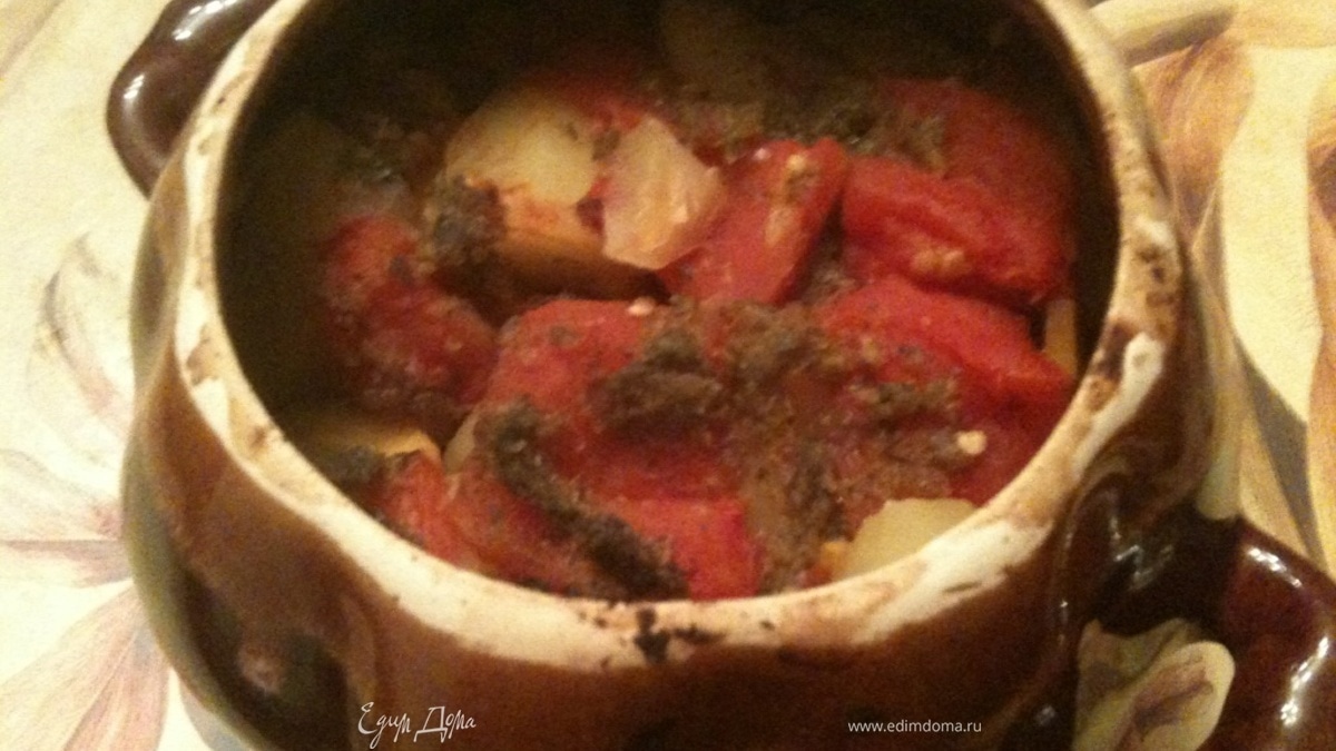 Баранаину нарезать небольшими кусками.В каждый горшочек влить растительное масло (на каждую порцию по 1 ст. л.) и выложить мясо,закрывши им дно. Чеснок,лук,перец и зелень мелко порубить (или измельчить в блендере) и хорошо перемешать.Баклажаны нарезать вдоль и как можно тоньше.Сделать из них рулетики,нафаршированные смесью из зелени и овощей.Картофель и морковь нарезать дольками или крупными кубиками.С помидор снять кожицу и нарезать крупными ломтиками.На мясо уложить слой из фаршированных баклажанов.Сверху уложить морковь,картофель и помидоры,посыпать оставшейся смесью рубленых чеснока,лука,перца и зелени.Посолить по вкусу.Горшочки закрыть крышками,поставить в духовку и тушить чанахи 1-1,5 при t 150-160 С.