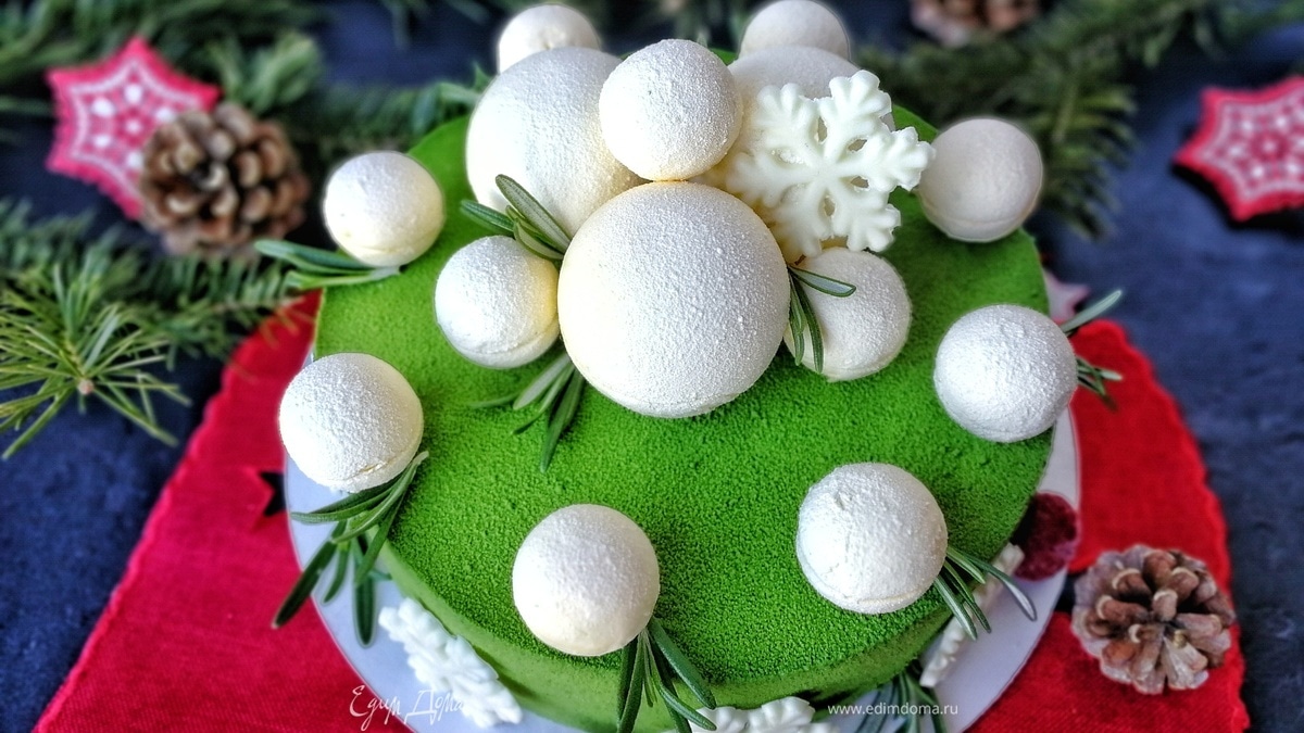 Новогодний праздничный торт «снежки на елке»