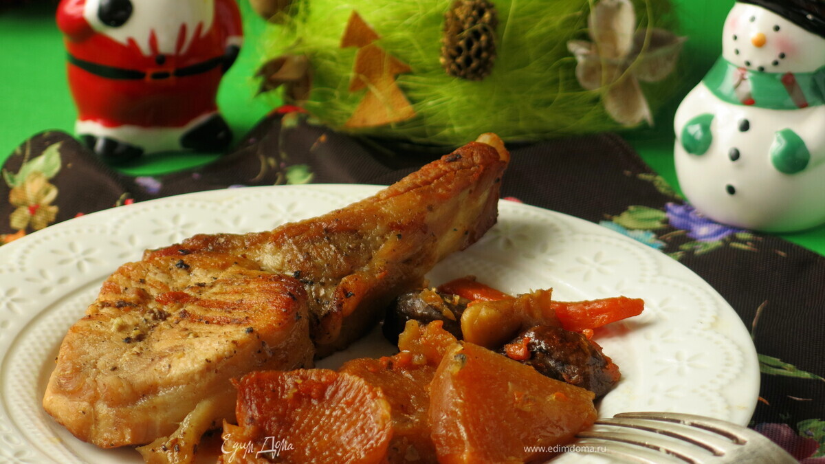 Корейка с репой и бататом — простое сытное блюдо. Гарнир овощной — прекрасное дополнение к свинине. Мясо томится в духовке, насыщается ароматами овощей. Приятного аппетита!