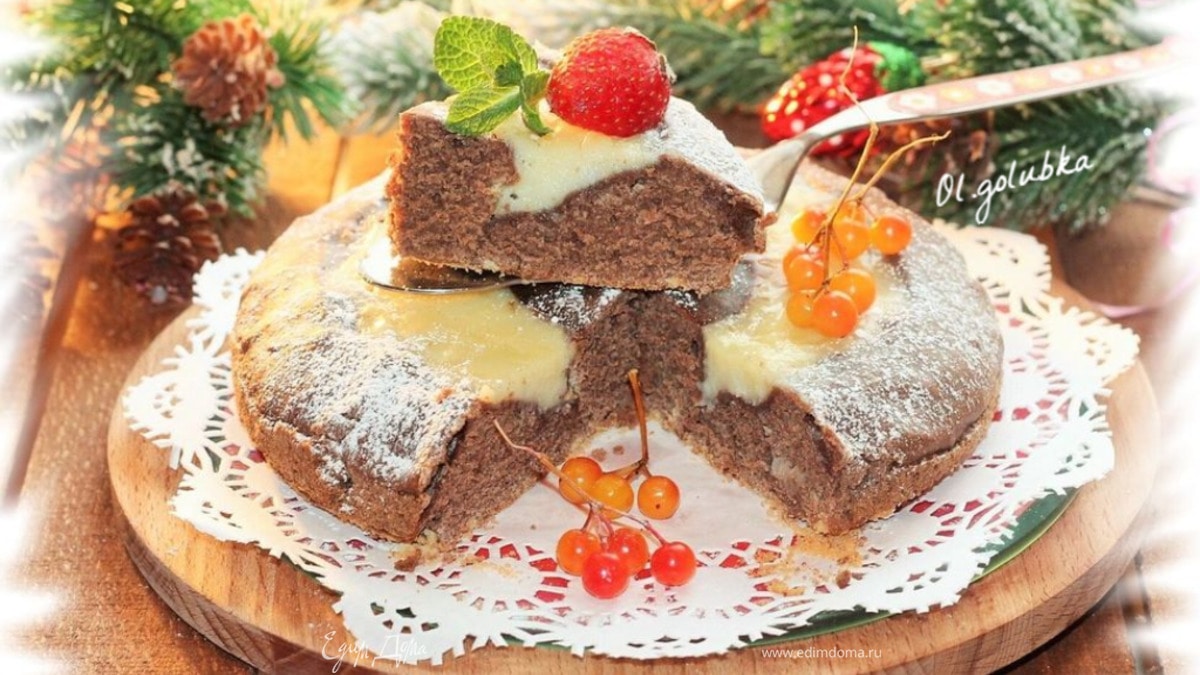 Шоколадный пирог с начинкой из нежного заварного крема, что делает его похожим на торт, такой необычный и загадочный! Готовила половину от рецепта теста, рецепт крема — полностью, получился очень