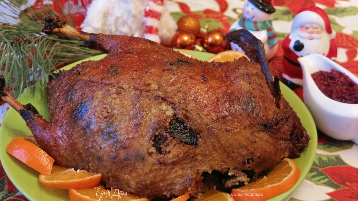 Угостите своих родных и близких уткой с черносливом и чумизой. Такую птичку можно подать уже первого числа, подготовить ее заранее, а запекать перед праздничным обедом. Утка приготовлена по принципу «галантина»,