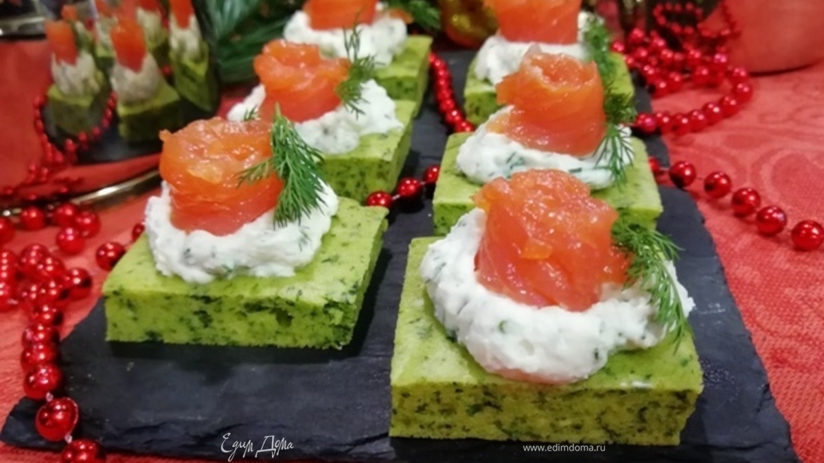 Утро 31 декабря — это уже праздник! Предлагаю создать новогоднее настроение с самого утра и подать на завтрак шпинатные пирожные с творожным кремом и слабосоленой форелью. На приготовление у вас уйдет не более 40 минут, а хорошее настроение гарантировано на весь день и праздничную ночь!