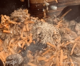 Когда морковь обжарится, добавьте барбарис и зиру.