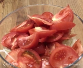 Когда рис приготовился, накройте плов крышкой. Можно заняться салатом.