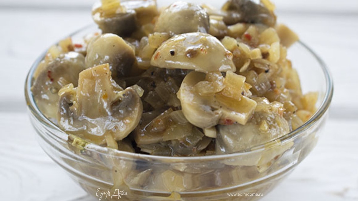 Быстрая и легкая в приготовлении освежающая закуска из шампиньонов отлично подойдет к