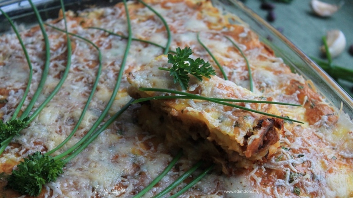 В смазанную форму выкладываем половину картофельного пюре. Равномерно распределяем. - Шаг 12