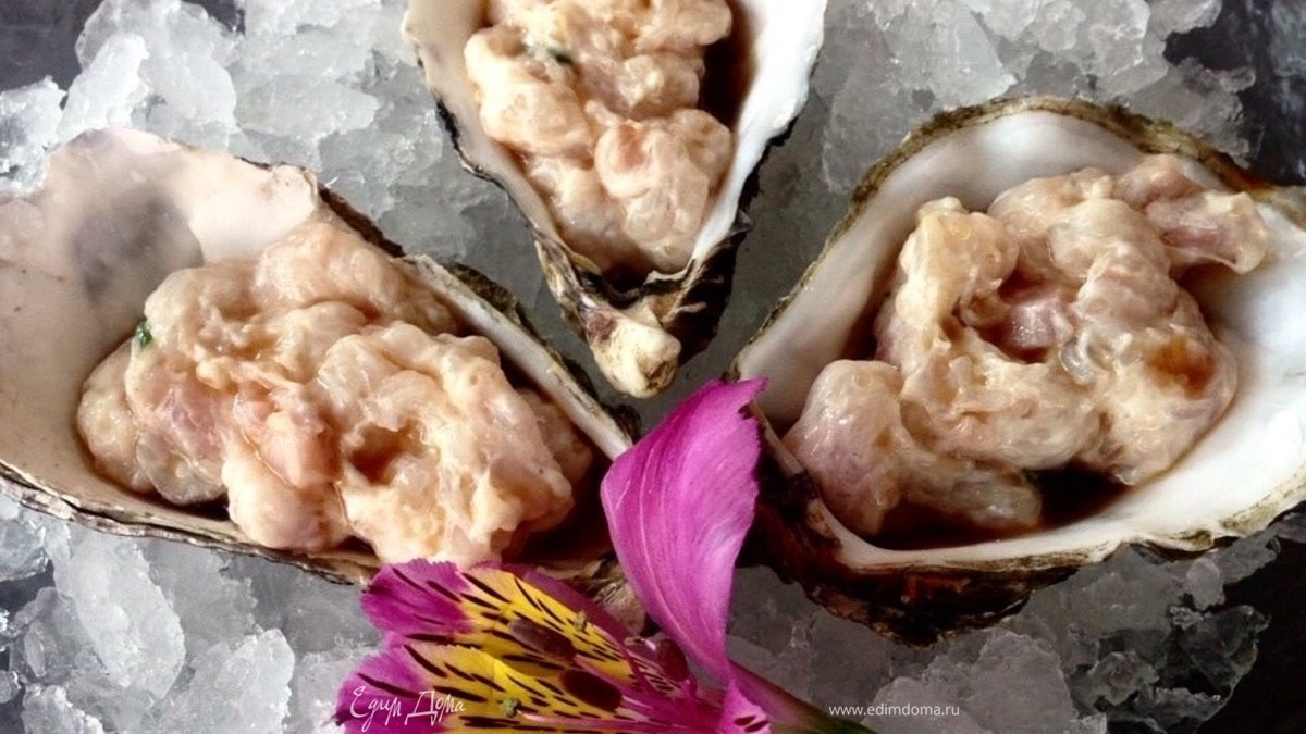 Все готово! Подаем, положив устричные раковины на лед. Приятного аппетита!