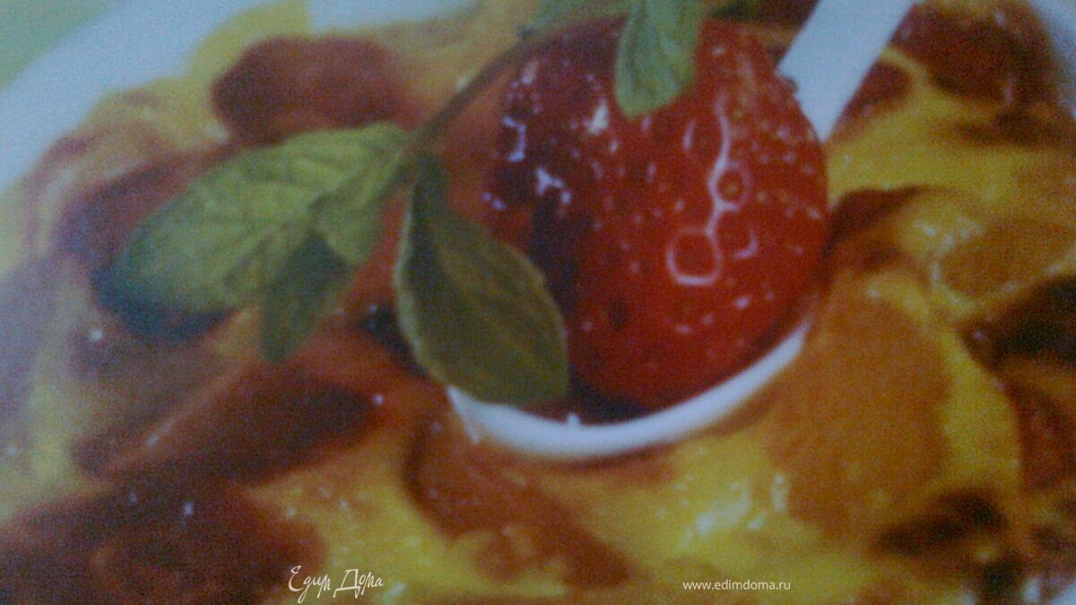 - Шаг 4Максимально нагрейте гриль.Залейте фрукты этой густой массой,напоминающей мусс,и поместите чашки под гриль.Дайте подрумяниться в течение нескольких минут и сразу подавайте,украсив каждую порцию целой ягодкой земляники и веточкой мяты)