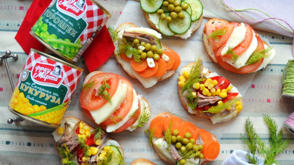 Новогодние каникулы всегда немного ленивые, и на выручку приходят бутерброды ассорти, обязательным ингредиентом которых являются консервированные горошек и кукуруза ТМ «Фрау Марта».