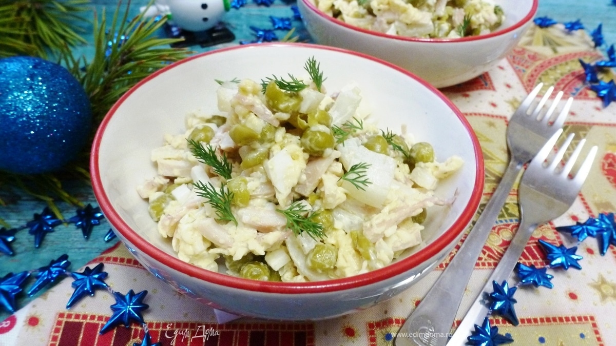 В поиске новых и интересных салатов мы забываем или не обращаем внимания на старые рецепты. Салат «Чайка», я думаю, незаслуженно подзабыт, хотя в свои времена он был на праздничных столах наших родителей. Конечно, здесь нет ни авокадо, ни ананасов, ни лука-порея, но салат все равно вкусный и сытный. В салате нет лука, а остальные ингредиенты имеют довольно нейтральный вкус, если только сыр вы возьмете поострее. Поэтому у салата приятный, мягкий и довольно нежный вкус.