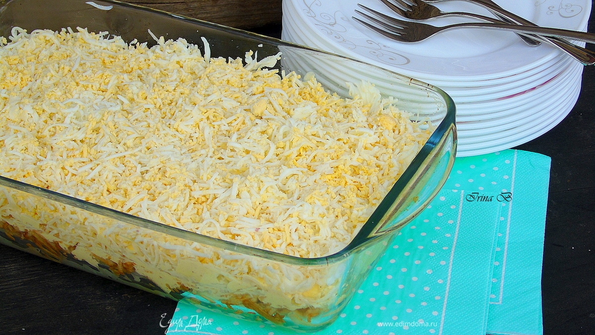 Раньше делала, только лука поменьше клала. И ещё сверху можно добать немного грецких орехов. Где-то рецепт записан, под каким названием не помню. Мне очень нравился. Сейчас самой готовить майонез лень, а покупной не хочется использовать. Ирина, спасибо, что напомнила. 😉😊😋