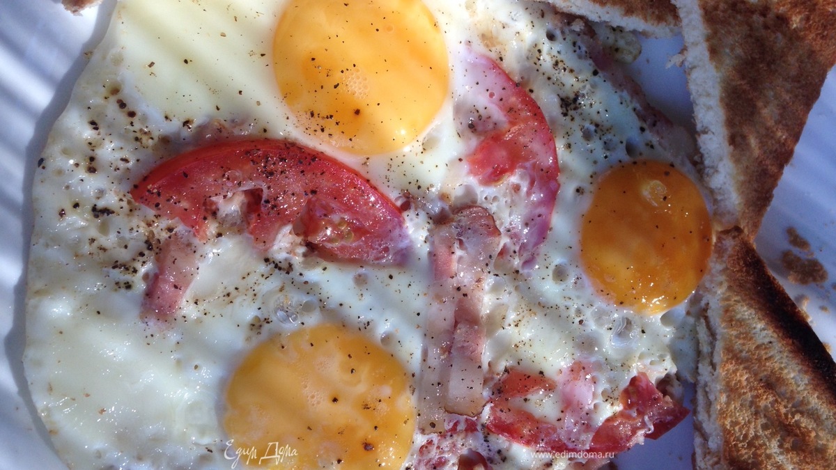 Добавить яйца, помидоры, соль, перец. Жарить 3–5 минут. Тостовый или любой другой хлеб поджарить по 1 минуте в тостере или на решетке в духовке 5 минут. - Шаг 3