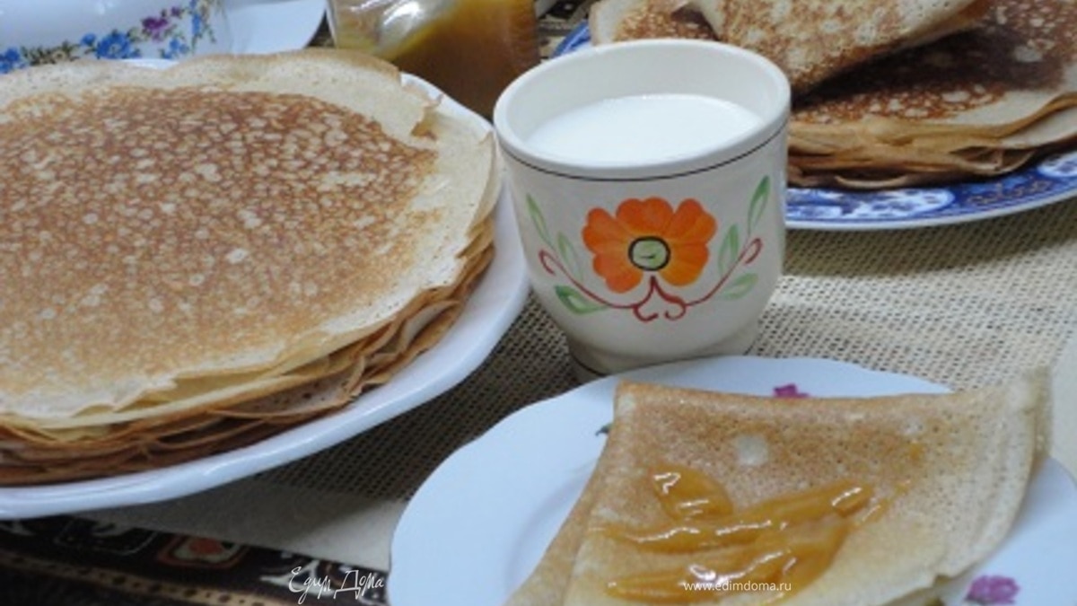 Едим блины кому с чем нравится — сливочным маслом, медом, молоком.