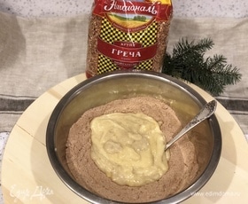 Добавить 1/2 стакана гречневой муки к полбяной.