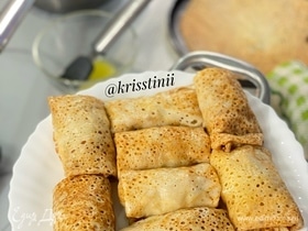 Добрый день! Делюсь с вами своим самым лучшим рецептом блинов. Они тоненькие и нежнейшие. С ними возможны разные вариации подачи: и с мясом, и мешочки с жульеном, и с рыбой, и с творогом. В общем, экспериментируйте!